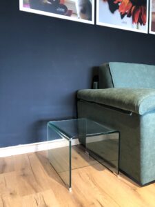 Tavolino in vetro curvato, perfetto per dare un tocco moderno ed elegante alla stanza. Dimensioni cm 50x39x36h Il prezzo è da intendersi comprensivo di IVA ed escluso di trasporto e montaggio.
