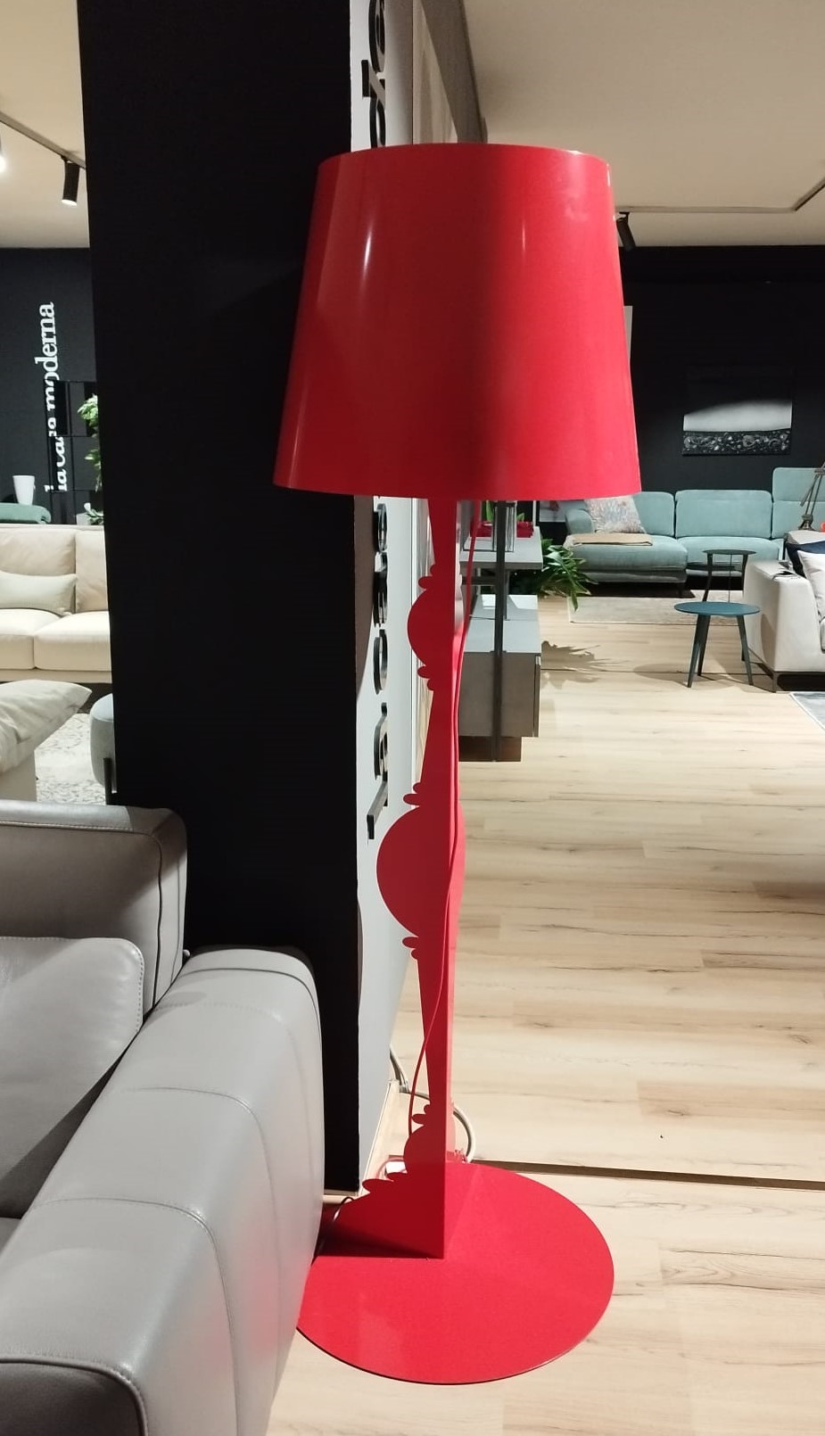 Demì270 è una lampada da terra di design che grazie alla base a semicerchio combacia alla perfezione con la superficie della parete e diventa un decoro per gli angoli o per impreziosire una colonna.
