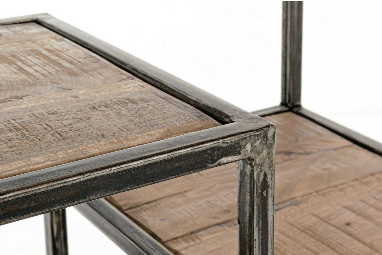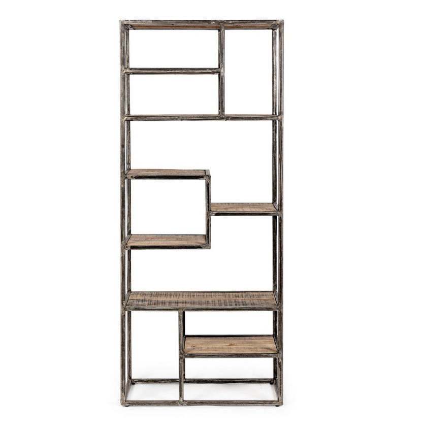 Libreria dallo stile industrial con struttura in ferro e ripiani in legno d’acacia