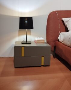 Comodino 2 cassetti La Casa Moderna Modula Night mod. Skat. L'apertura a gola asimmetrica e laccata a contrasto lo rende molto originale e fresco. Dimensioni cm 60x45x36.5h Il prezzo è da intendersi comprensivo di IVA ed escluso di trasporto e montaggio.