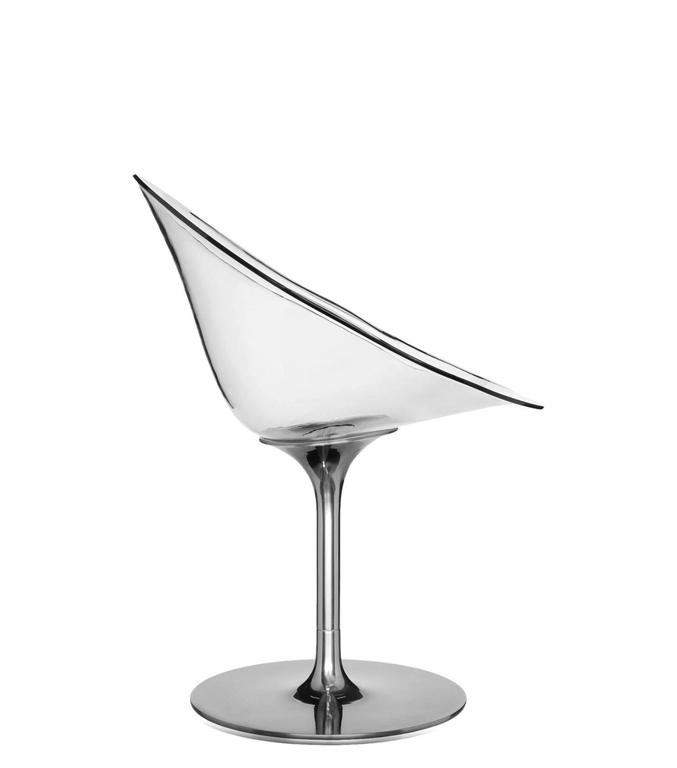 Ero/S/ è una poltroncina avvolgente, dalla forma organica a uovo, è ideale per la casa, in sala da pranzo o in soggiorno, ma può vivere anche negli uffici come seduta rappresentativa per la sala riunioni o nei luoghi d’attesa. La seduta in policarbonato trasparente appoggia su una base girevole a sostegno centrale in alluminio lucidato.