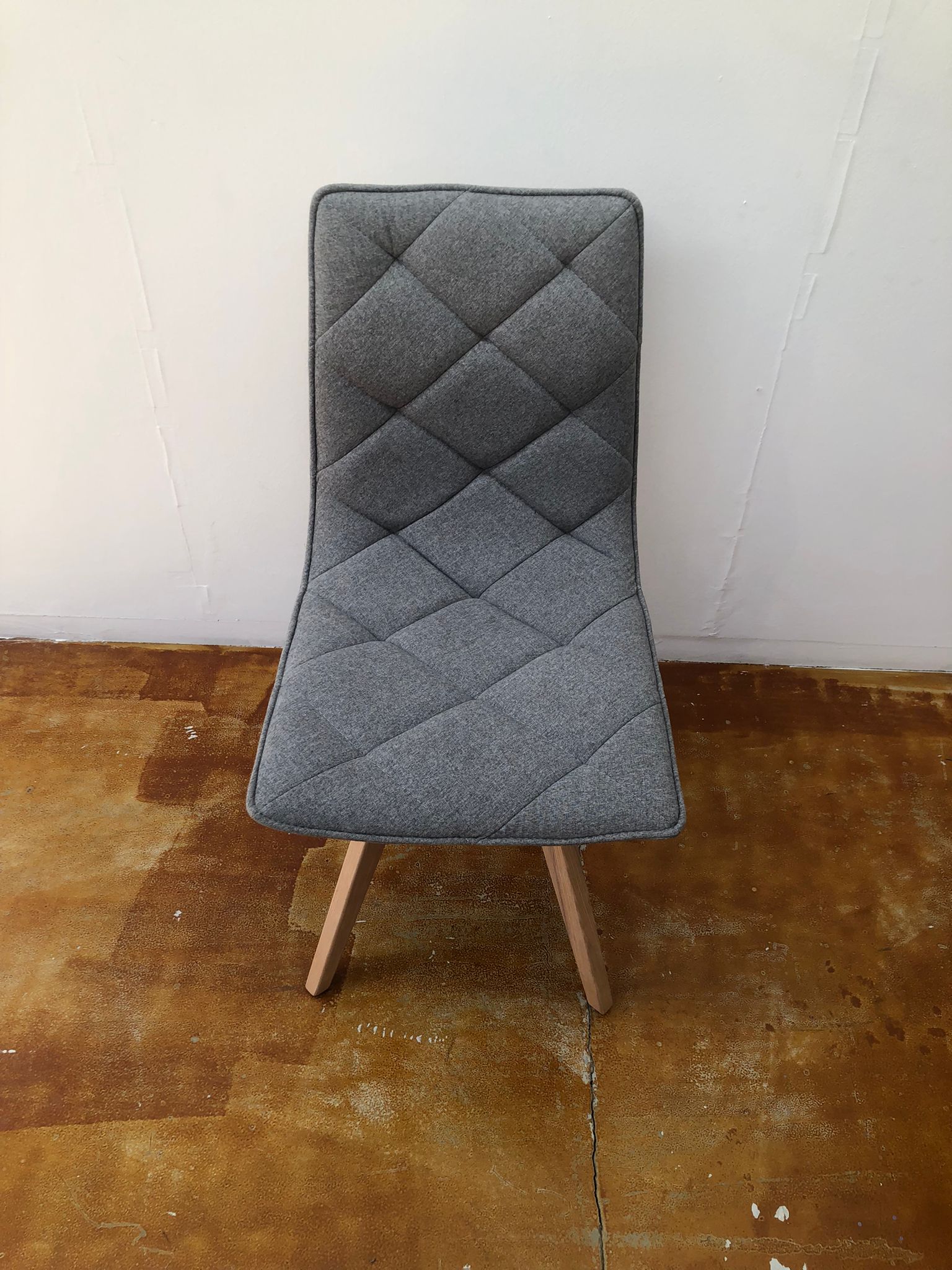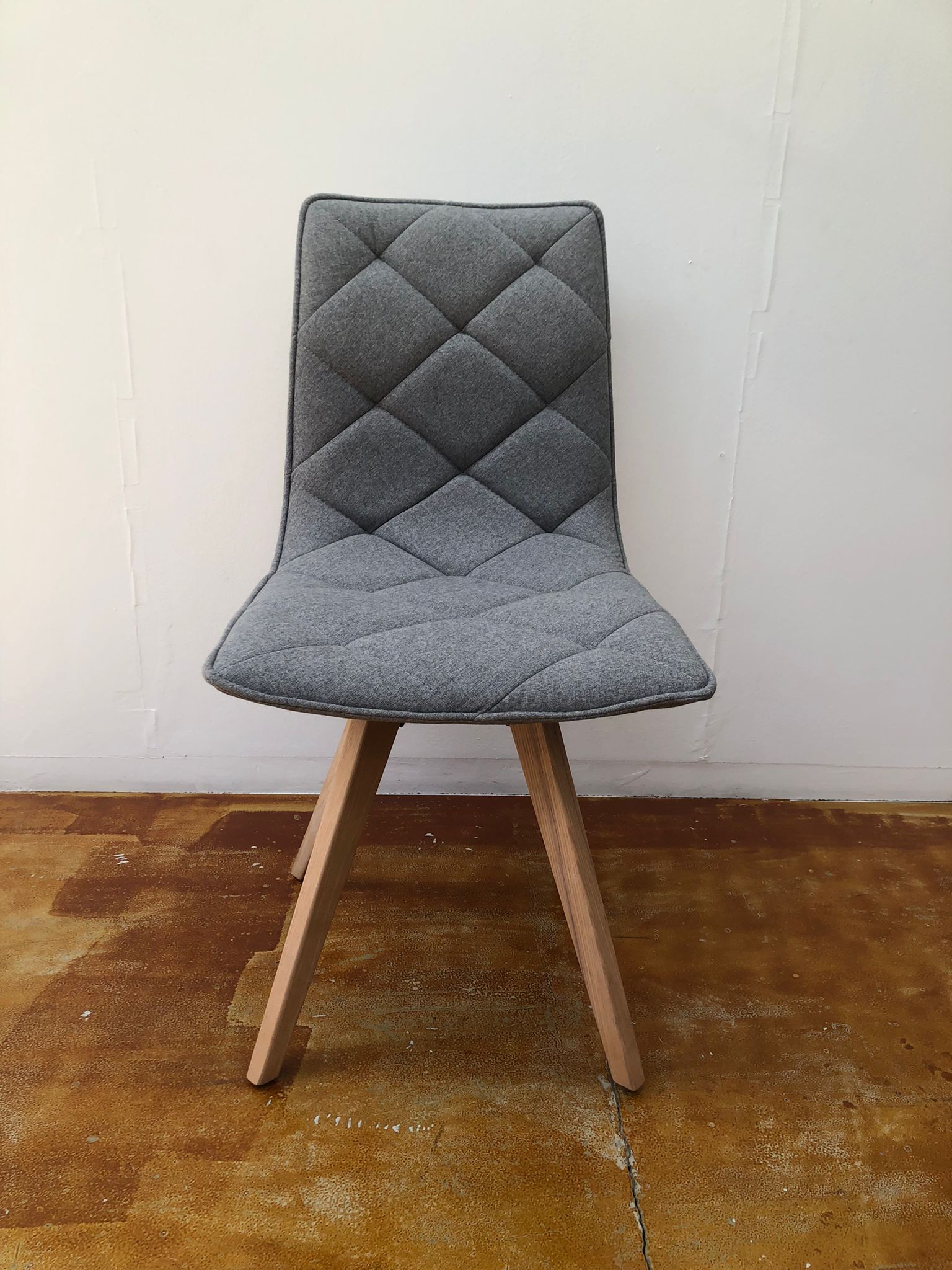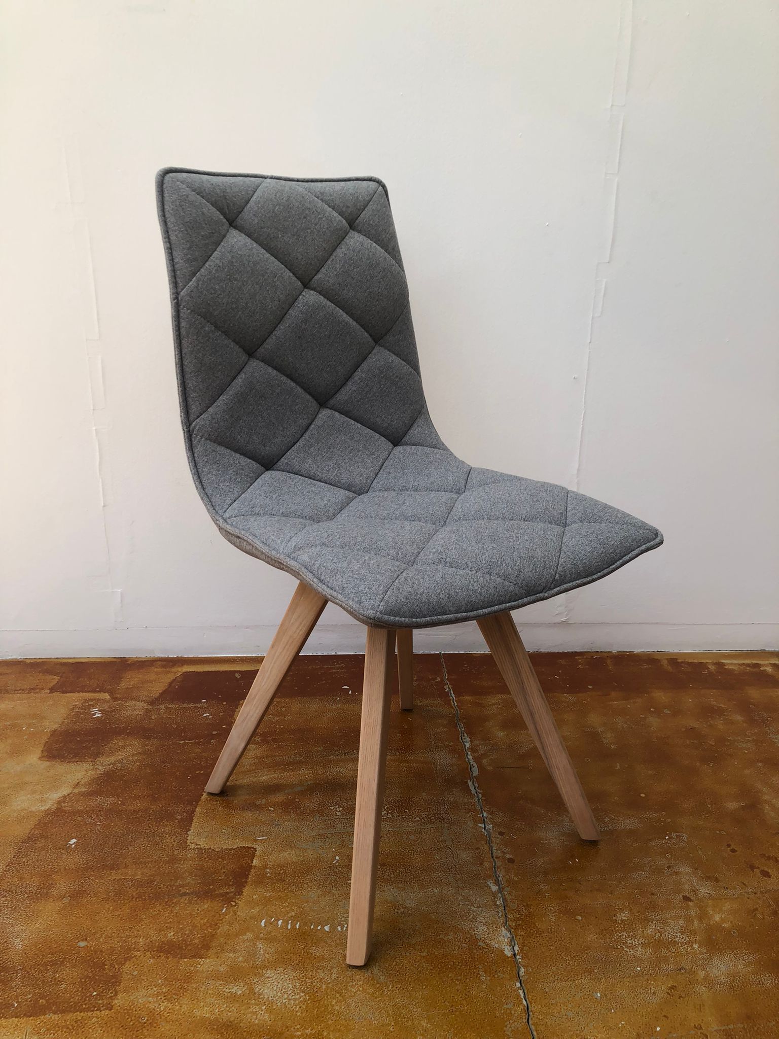 Sedia senza braccioli, imbottita, tessuto trapuntato grigio non sfoderabile e 4 gambe in legno naturale