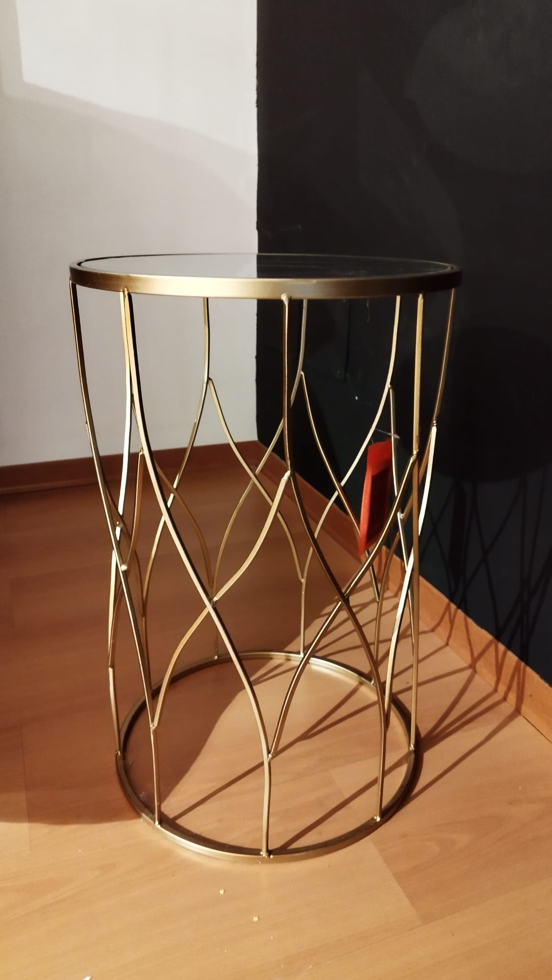 Tavolino rotondo La Casa Moderna My Deko mod. Elenor con struttura in metallo oro e piano a specchio.