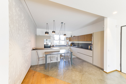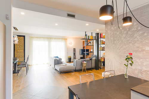 Una zona giorno luminosa e armoniosa, dove materiali caldi, arredi moderni e dettagli ricercati creano un’atmosfera accogliente senza rinunciare allo stile. Il living, la cucina e la sala da pranzo dialogano in uno spazio aperto e fluido, pensato per vivere ogni momento con naturalezza e bellezza.